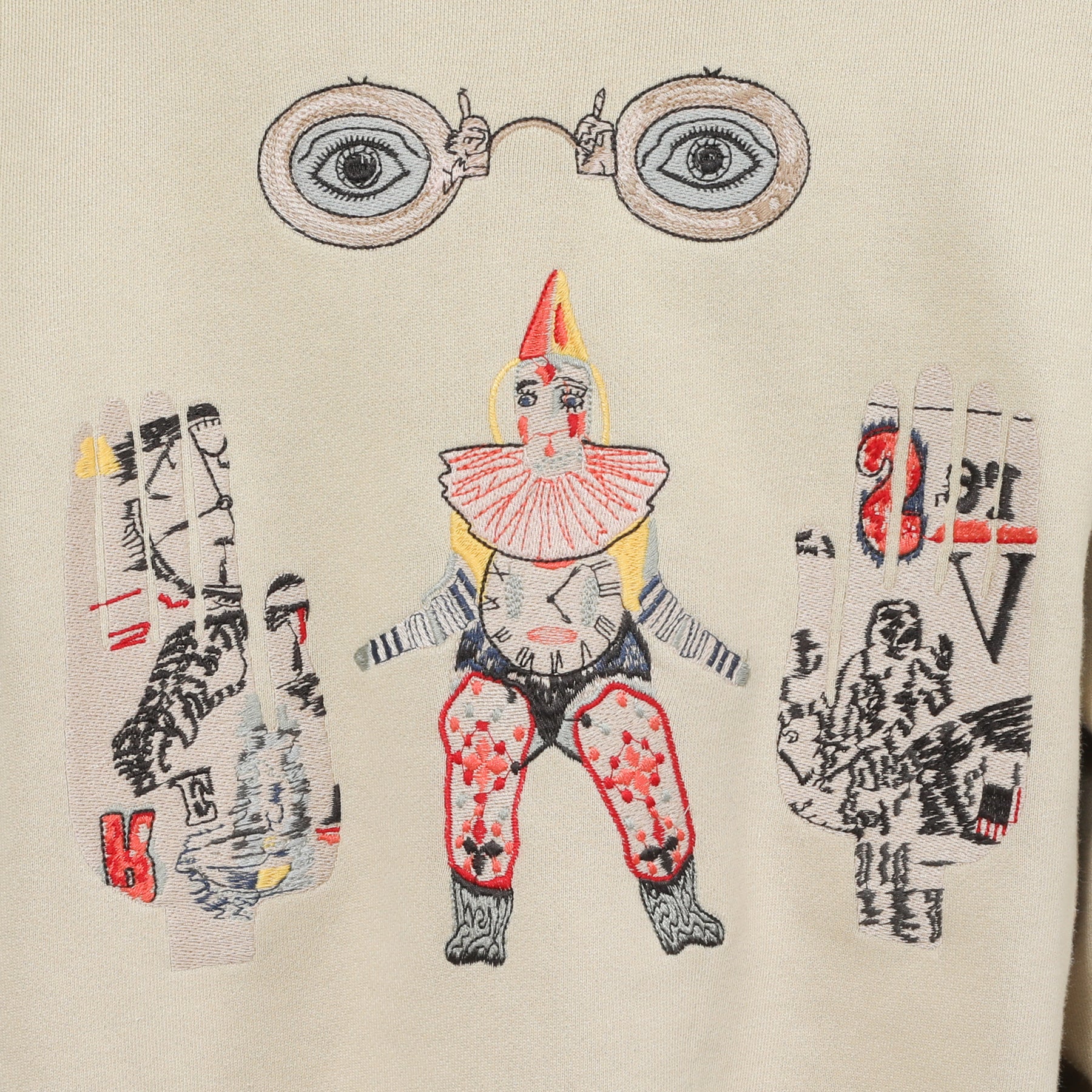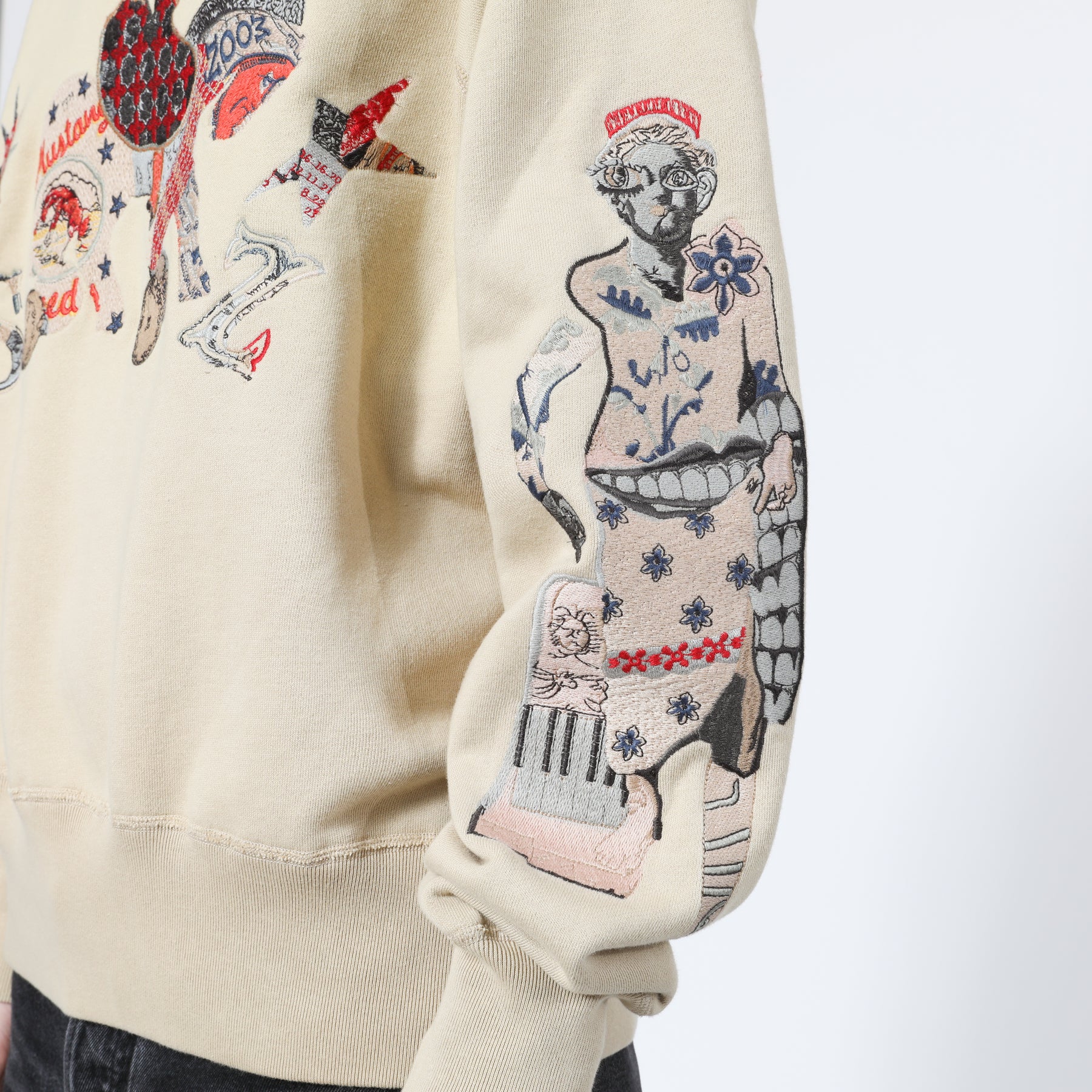 For this group, we were inspired by Dada, the early 20th-century art movement that rejected logic and tradition in favor of absurdity, spontaneity, and anti-art gestures. Dada artists like Hannah Höch and Kurt Schwitters used collage to disrupt meaning; cutting and pasting found images into strange, poetic new forms. We were also thinking about Robert Rauschenberg, whose layered, mixed-media works collapsed the boundaries between painting, sculpture, and everyday material. In a similar spirit, we started this collection not with drawings (as we usually do), but by physically collaging scraps of paper and found materials. We then scanned and re-drew them digitally, translating their raw textures into embroideries; preserving the improvisation and irreverence at the heart of Dada.